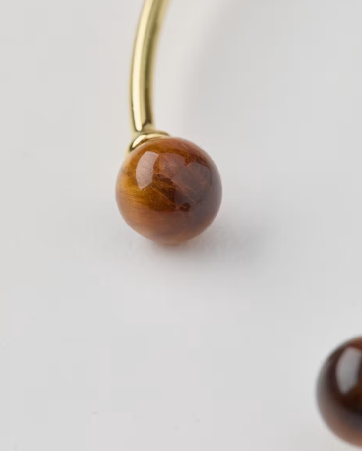 Our Solid Gold Thin Bracelet pairs a slim 14k gold–plated cuff with polished Tiger’s Eye stones at either end. Warm, earthy tones complement the clean lines for a look that’s both timeless and distinctive.